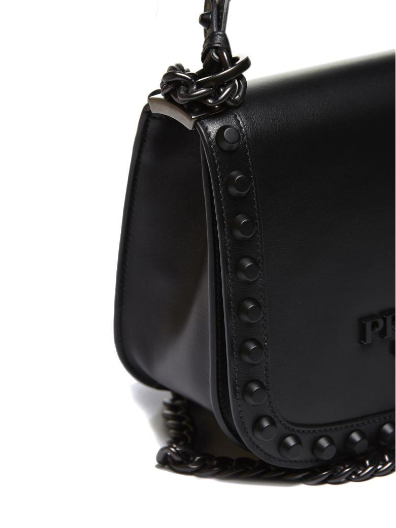 Prada Logo Plaque Stud Shoulder Bag In Nero ModeSens